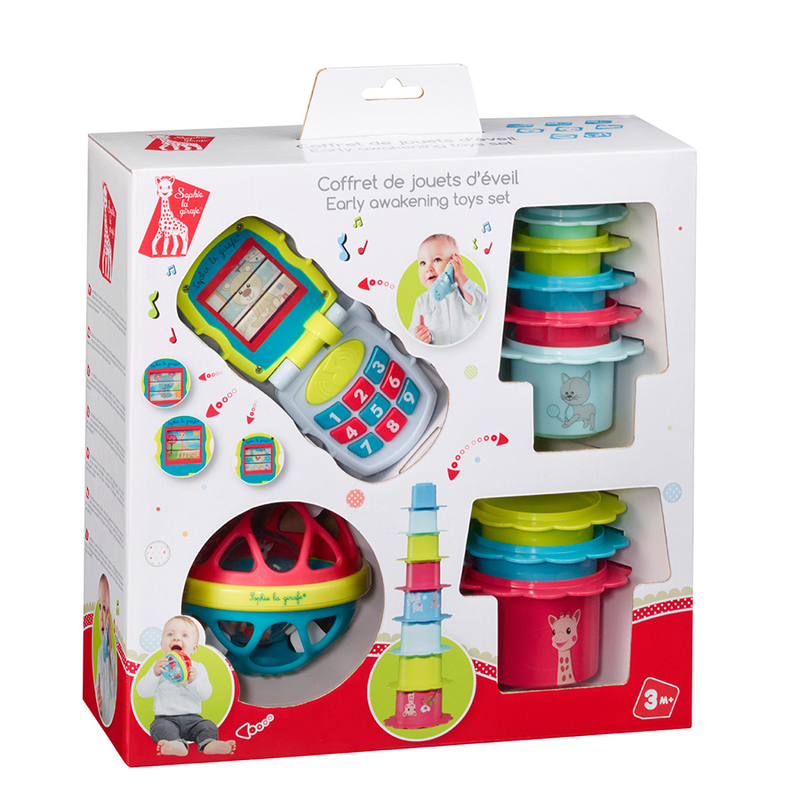 Sophie La Girafe-Σόφι η Καμηλοπάρδαλη Σετ παιχνίδια – Μουσικό τηλέφωνο, Μπάλα και Στοιβαζόμενα λουλούδια από 3 Μηνών