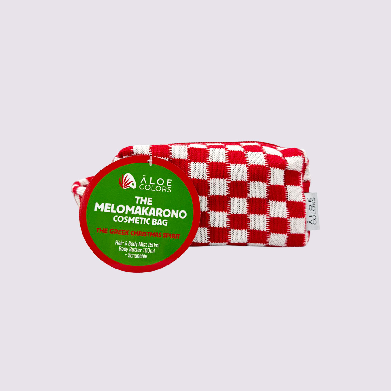 ALOE COLORS The Melomakarono Cosmetic Bag με Άρωμα Μελομακάρονο/ Hair & Body Mist -150ml & Body Butter -100ml & ΔΩΡΟ Νεσεσέρ + Scrunchy, 1σετ