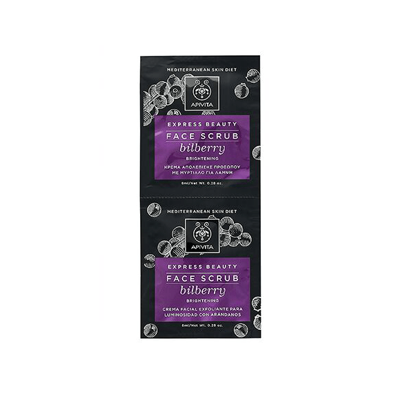 Apivita Bilberry Face Κρέμα Απολέπισης προσώπου με μύρτιλλο για Λάμψη, 2 x 8ml