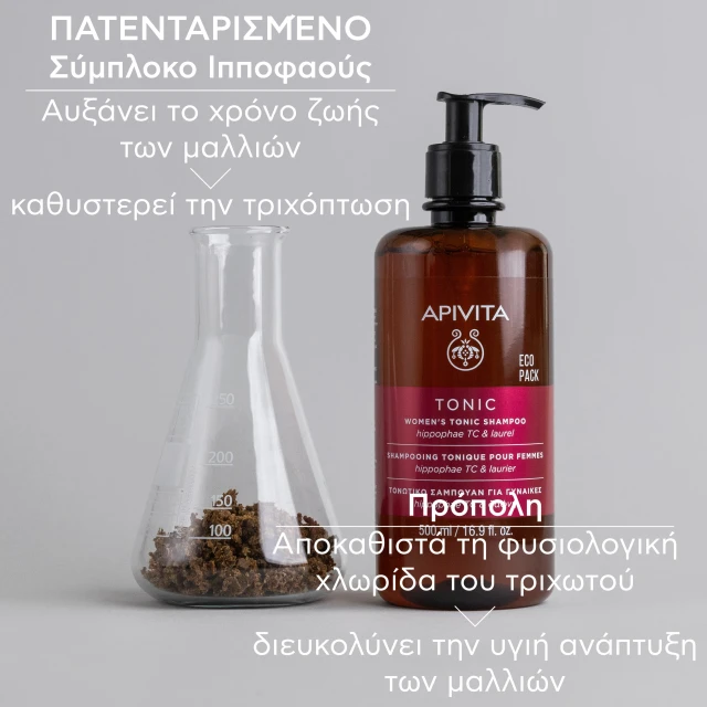 Apivita Eco Pack Women’s Tonic Shampoo Τονωτικό Σαμπουάν κατά της Γυναικείας Τριχόπτωσης με Hippophae TC & Δάφνη, 500ml