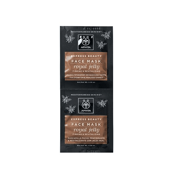 Apivita Express Beauty Face Mask Royal Jelly Μάσκα Προσώπου Για Σύσφιξη & Αναζωογόνηση Με Βασιλικό Πολτό, 2x8ml