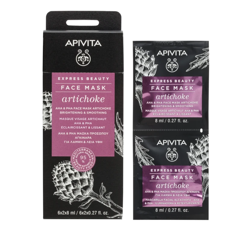Apivita Express Mask AHA & PHA Μάσκα Προσώπου με Αγκινάρα για Λάμψη & Λεία Υφή, 2x8ml