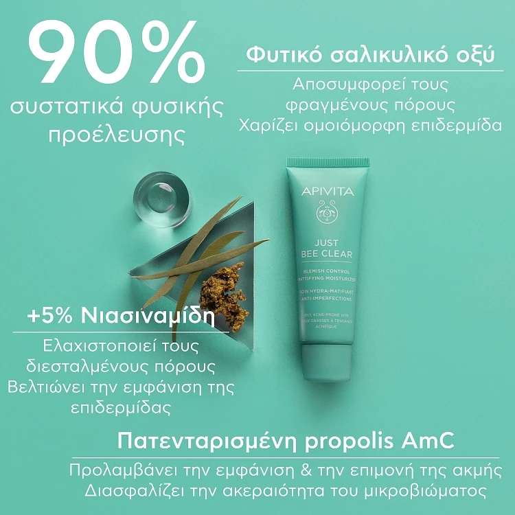 Κύρια Δραστικά Συστατικά: Πατενταρισμένη propolis AmC, Φυτικό σαλικυλικό οξύ, 5% Νιασιναμίδη