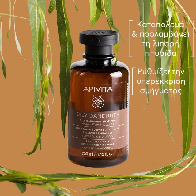 Apivita Oily Dandruff Shampoo Σαμπουάν κατά της Λιπαρής Πιτυρίδας με Λευκή Ιτιά & Πρόπολη, 250ml