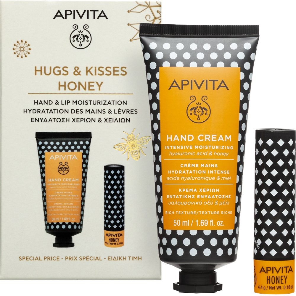 Apivita Promo Hugs & Kisses με Κρέμα Χεριών Εντατικής Ενυδάτωσης με Υαλουρονικό Οξύ & Μέλι, 50ml & Honey Balm για Σκασμένα Χείλη, 4.4g, 1σετ