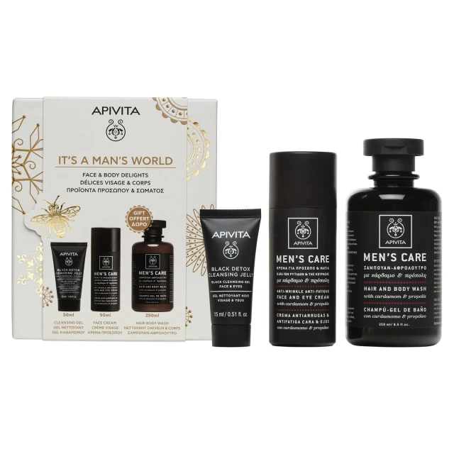 Apivita Promo Men’s Care Σετ Ανδρικής Περιποίησης με Κρέμα Προσώπου & Ματιών, 50ml, Gel Καθαρισμού για Πρόσωπο & Μάτια, 50ml & Δώρο Σαμπουάν – Αφρόλουτρο, 250ml, 1σετ