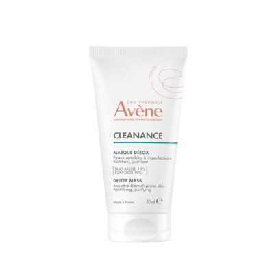 Η μάσκα αποτοξίνωσης Cleanance είναι μια μάσκα για ορατά αποτελέσματα στο ευαίσθητο δέρμα με ατέλειες. Χάρη στον αποκλειστικό συνδυασμό συμπυκνωμένων απορροφητικών αργίλων (19%) και απολεπιστικού περλίτη, καθαρίζει, δίνει ματ αποτέλεσμα και συσφίγγει τους πόρους από τα πρώτα 5 λεπτά*. Αφήνει την επιδερμίδα άνετη και καταπραϋμένη χάρη στους υδροθρεπτικούς παράγοντες που περιέχει, οι οποίοι σχετίζονται με το ιαματικό νερό της Avène. Οι ατέλειες μειώνονται στο 90% των χρηστών**.