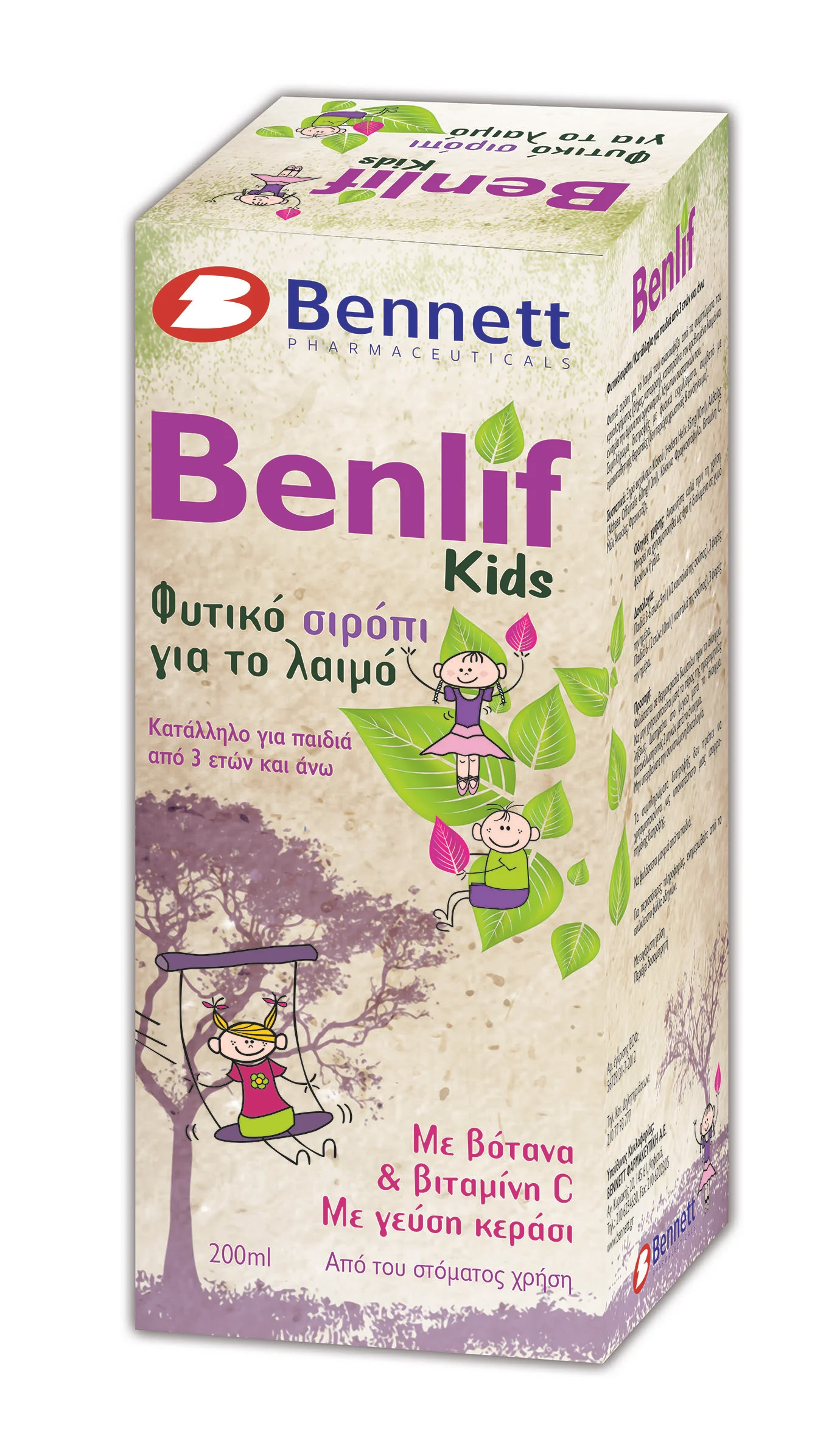 - Το σιρόπι Benlif kids της Bennett είναι το πρώτο φυτικό σιρόπι που ανακουφίζει από όλα τα συμπτώματα του κρυολογήματος, όπως βήχας, καταρροή και ερεθισμένος λαιμός.
