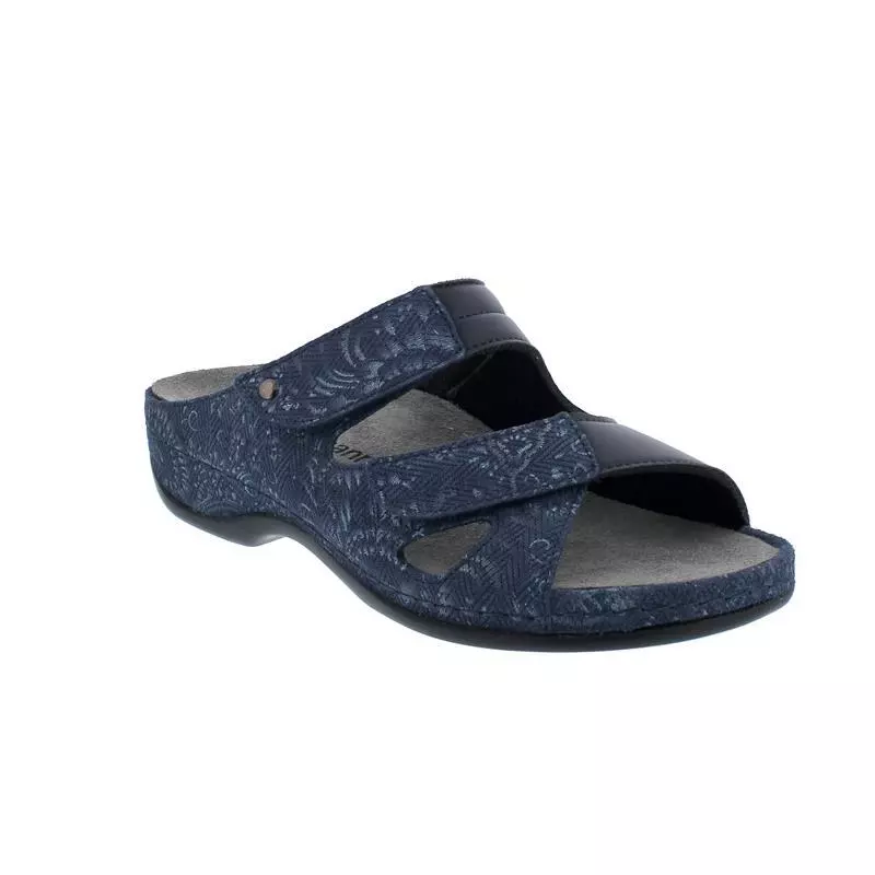 Berkemann Janna Mules, Blue, Flowers Leather/Stretch, Removable Footbed:01027-324