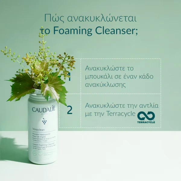 *Όπου υπάρχουν εγκαταστάσεις. Ανακυκλώσιμες αντλίες δεν υπάρχουν: περισυλλέγονται στις Boutiques Caudalie χάρη στη συνεργασία με την εταιρεία TerraCycle.