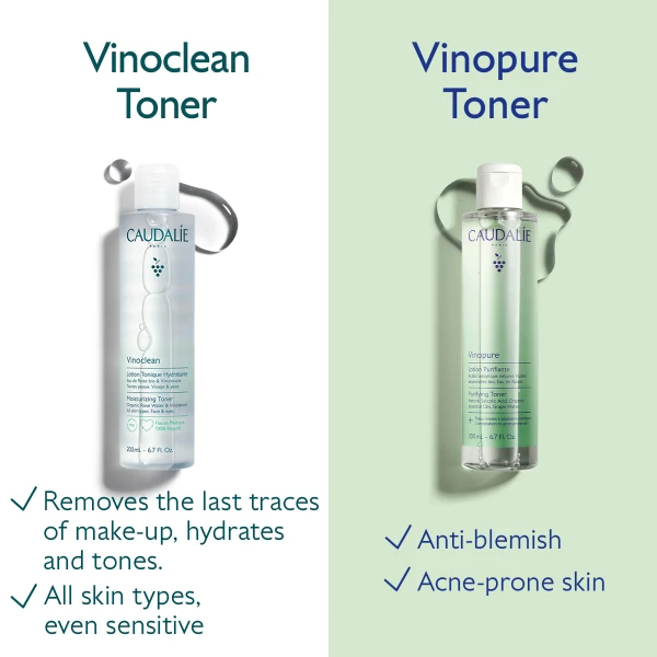 Νέα σύνθεση για υγιή, ματ και καθαρή όψη. To Vinopure Toner δρά κατά των ατελειών και της λιπαρότητας, για λαμπερή και καθαρή επιδερμίδα.