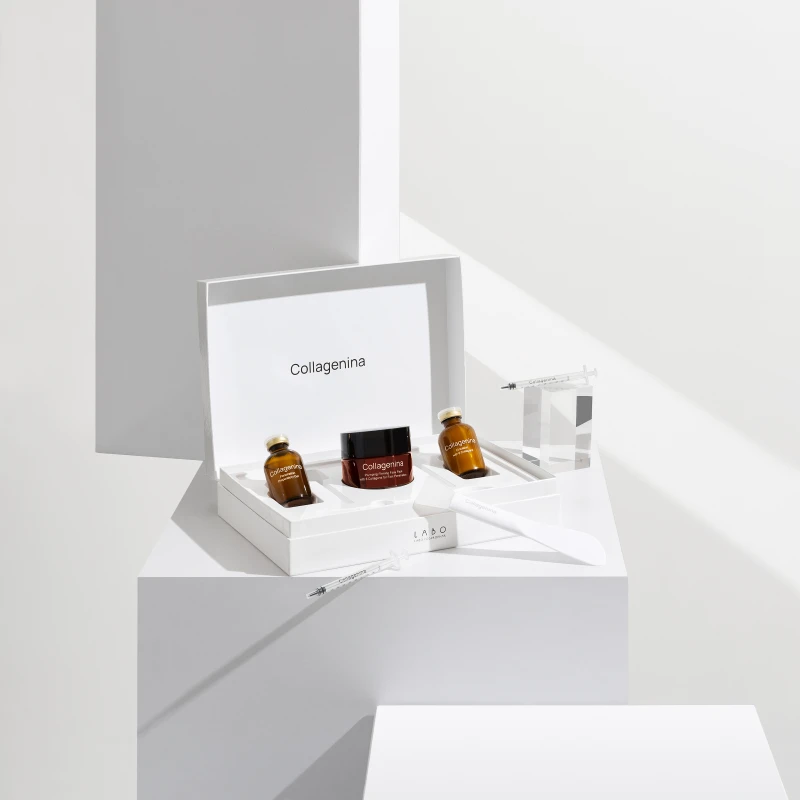 H Labo δημιούργησε την Collagenina μία δερμο-καλλυντική αγωγή που προσφέρει άμεση σύσφιξη και ελαστικότητα του δέρματος χωρίς επεμβατικές θεραπείες. Είναι μια εντατική αντιγηραντική αγωγή 14 ημερών με εύκολη εφαρμογή στο σπίτι κι ορατά αποτελέσματα από την 1η εβδομάδα στην σφριγηλότητα, την πυκνότητα, την ελαστικότητα, την ανόρθωση και στη μείωση των ρυτίδων του προσώπου.