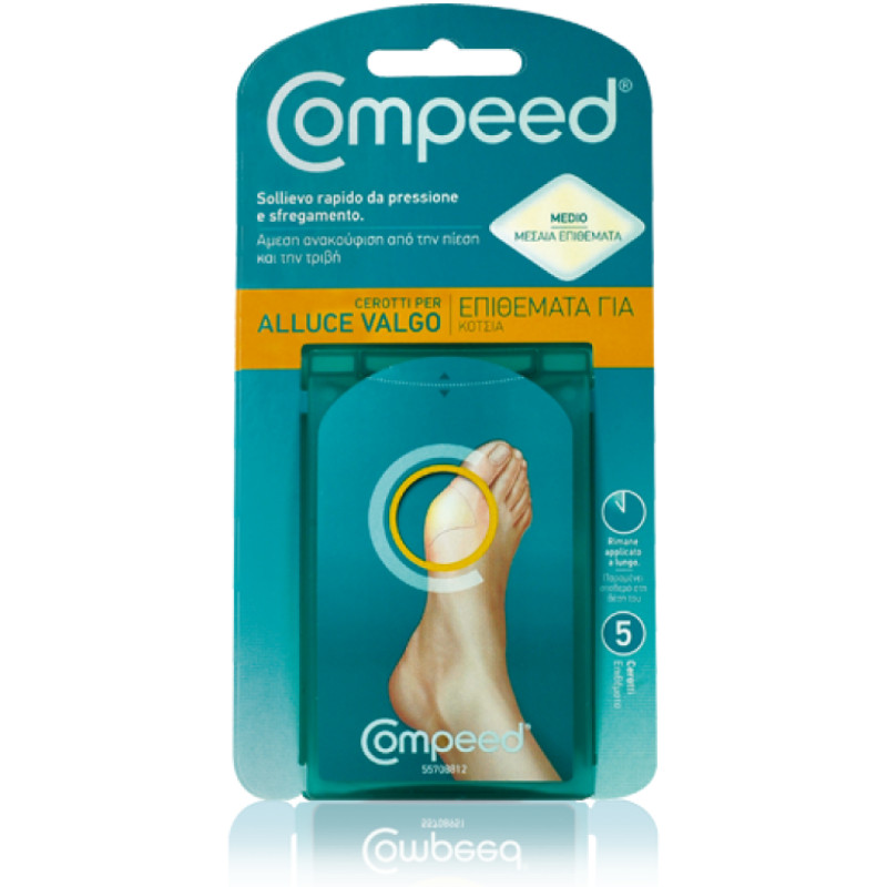 Ειδικά σχεδιασμένα για να εφαρμόζουν γύρω από το πόδι, τα Compeed® Bunions Plusters – Επιθέματα για Κότσι, παρέχουν άμεση ανακούφιση από την πίεση και την τριβή, συμβάλλοντας στην πρόληψη για φουσκάλες και περαιτέρω σκλήρυνση του δέρματος.