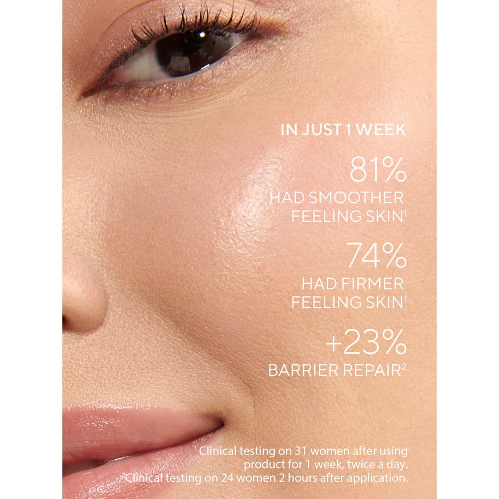Από την πρώτη εφαρμογή, ο δερματικός φραγμός επιδιορθώνεται και ενισχύεται με αντιοξειδωτικά που προστατεύουν την επιδερμίδα από τους εξωτερικούς επιθετικούς παράγοντες. Με την πάροδο του χρόνου, βελτιώνεται η σφριγηλότητα, η λεία εμφάνιση, η λάμψη και η υφή του δέρματος.