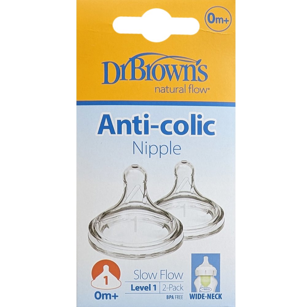 Dr. Brown’s Natural Flow Anti-Colic Nipple (1201) 0m+ Θηλές Σιλικόνης για Μπιμπερό με Φαρδύ Λαιμό Επίπεδο 1, 2τεμ