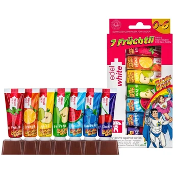 Η παιδική οδοντόκρεμα Edel & White περιέχει 500 ppm φθόριο που ενδυναμώνει το σμάλτο.
