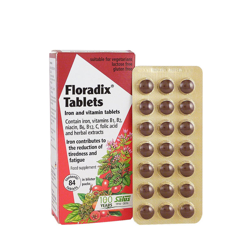 Η μέρα τελειώνει, όχι όμως και οι αντοχές σας! Τονωθείτε φυσικά, με Floradix Tablets! Ιδανικό για εσάς που θέλετε ενέργεια σε μορφή… ταμπλέτας. Το Floradix Tablets περιέχει οργανικό γλυκονικό σίδηρο (ΙΙ), βιταμίνες Β2, Β6, Β12 και C που συμβάλλουν στη μείωση της κούρασης και της κόπωσης, καθώς και στη φυσιολογική λειτουργία των μεταβολικών διεργασιών που αποσκοπούν στην παραγωγή ενέργειας. Ο σίδηρος συμβάλλει στο φυσιολογικό σχηματισμό ερυθρών αιμοσφαιρίων (με την υποστήριξη των βιταμινών Β6 και Β12) και της αιμοσφαιρίνης. Επιπρόσθετα το φολικό οξύ συμβάλλει στην ανάπτυξη του μητρικού ιστού κατά την εγκυμοσύνη. Επιπλέον, η βιταμίνη C αυξάνει την απορρόφηση του σιδήρου.
