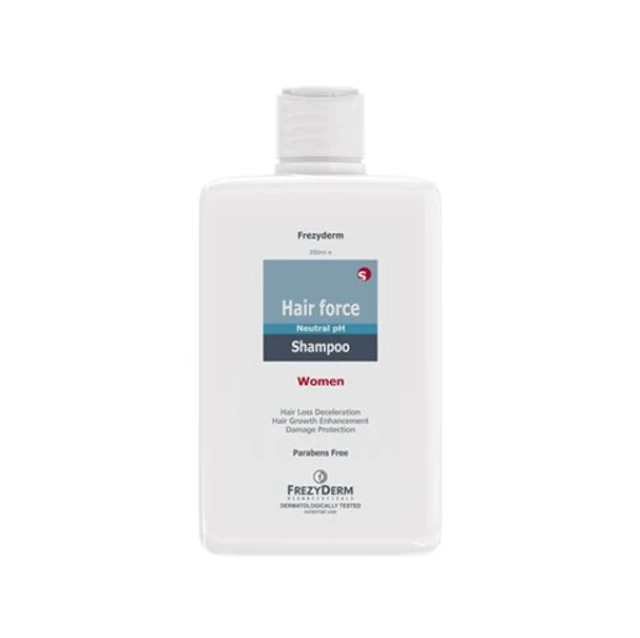 Το Frezyderm Hair Force Shampoo Women αντιμετωπίζει τόσο την εποχική όσο και τη χρόνια αντιδραστική τριχόπτωση και τα αδύναμα μαλλιά.