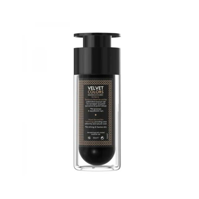 Βασισμένο στην πατενταρισμένη Second Skin Velvet Technology, αφήνει μοναδικά ανάλαφρη αίσθηση, χωρίς να ασφυκτιά το δέρμα, προσροφά τη λιπαρότητα χαρίζοντας ματ όψη που διαρκεί πάνω από 6 ώρες ενώ το χρώμα παραμένει σταθερό και αναλλοίωτο.