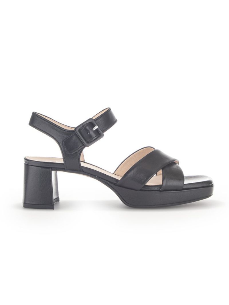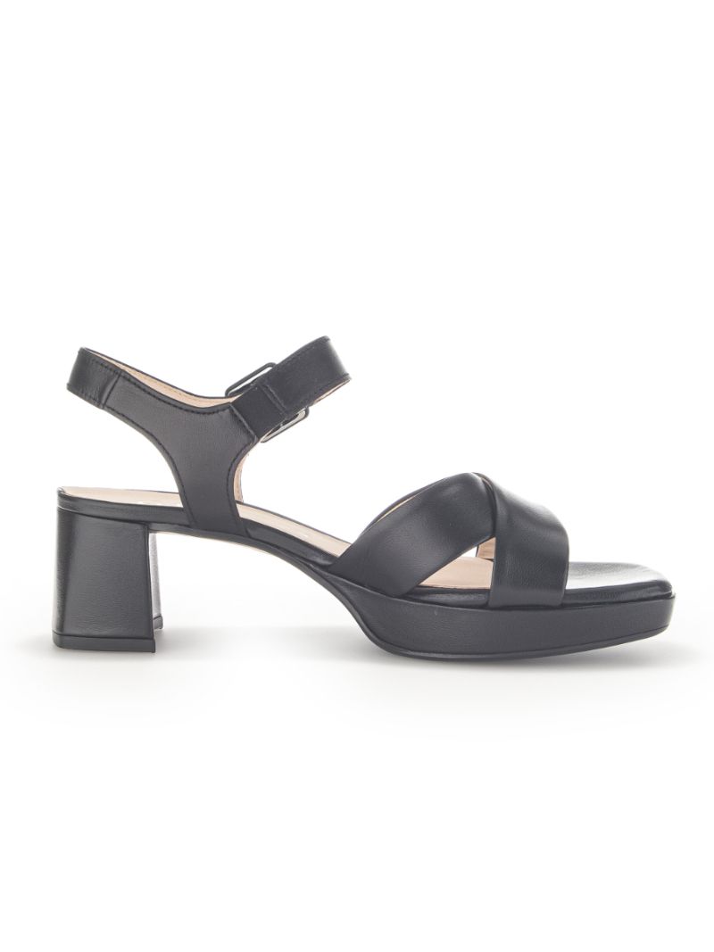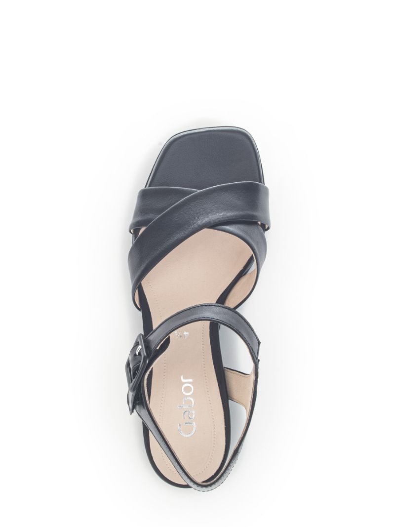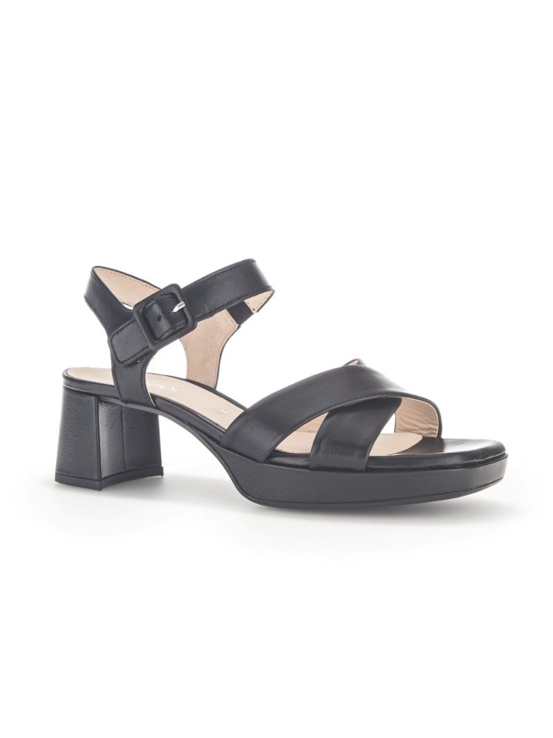 Ανατομικό δερμάτινο πέδιλο εσωτερικά και εξωτερικά της παγκοσμίως αναγνωρισμένης εταιρείας Gabor. Με 5,5 cm τακούνι και 2cm φιάπα. Ανατομικό πολύ μαλακό πέλμα σε φόρμα G με latex αντιολισθητική σόλα που απορροφά τους κραδασμούς. Ευκολοφόρετο, με ρυθμιζόμενο λουράκι το οποίο διαθέτει και αυτοκόλλητο κούμπωμα velcro για τέλεια εφαρμογή. Αγκαλιάζει τέλεια το κουντεπιέ και συνδυάζεται με παντελόνια, φούστες και σορτς. Έχει επιλεγεί και από τη διάσημη Γερμανίδα τραγουδίστρια Yvonne Catterfeld.