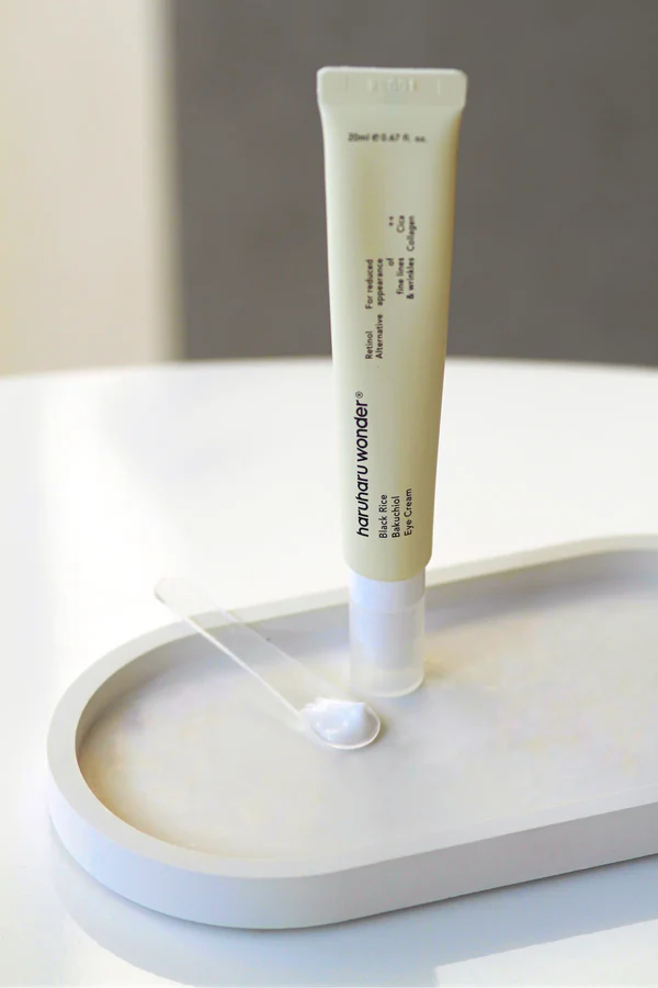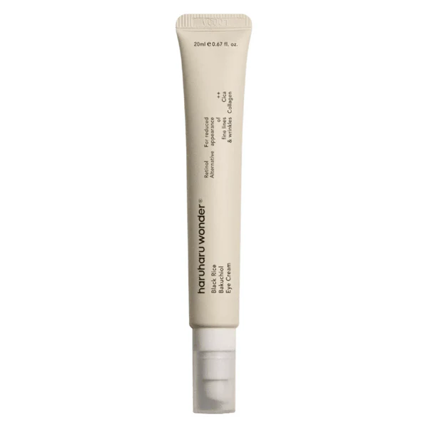 Φωτίστε και λειάνετε την περιοχή κάτω από τα μάτια σας με την κρέμα ματιών Black Rice Bakuchiol της Haruharu Wonder, εμπλουτισμένη με Μπακουχιόλη, Ζυμωμένο μαύρο ρύζι και εκχύλισμα φλοιού βλαστών μπαμπού.