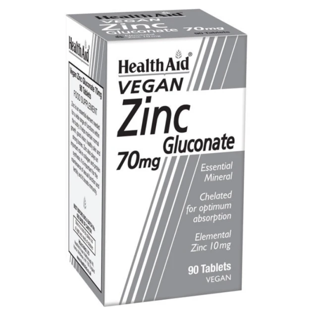 Health Aid Zinc Gluconate 70mg Συμπλήρωμα Διατροφής Ψευδαργύρου για Τόνωση Ανοσοποιητικού, Καλή Υγεία Δέρματος & Αναπαραγωγικού, 90tabs