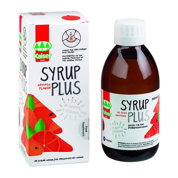 Το Kaiser Syrup Plus orange flavour είναι ένα σιρόπι για τον ερεθισμένο λαιμό και το παραγωγικό βήχα, με γεύση πορτοκάλι.