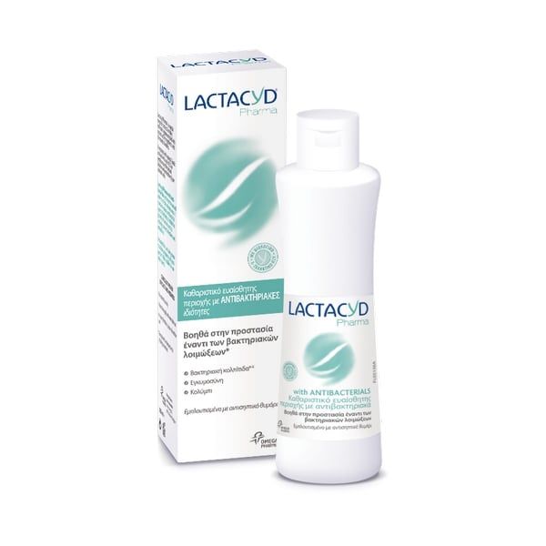 Το Lactacyd Pharma with Antibacterials ενισχύει τις φυσικές άμυνες της ευαίσθητης περιοχής. Περιέχει φυσικούς αντιβακτηριακούς παράγοντες που βοηθούν στην αναστολή της ανάπτυξης βακτηρίων και την πρόληψη των λοιμώξεων και της κακοσμίας.
