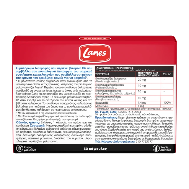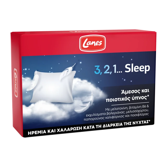 Συμπλήρωμα διατροφής, με μελατονίνη, βιταμίνη Β6 & εκχυλίσματα βαλεριάνας, μελισσόχορτου, παπαρούνας καλιφόρνιας και πασιφλόρας για έναν άμεσο και ποιοτικό ύπνο.