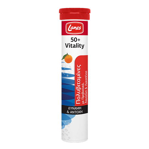 Η πολυβιταμίνη Vitality 50+ προσφέρει έναν καινοτόμο συνδυασμό βιταμινών &μετάλλων ενισχυμένο με έξτρα συστατικά και είναι ειδικά σχεδιασμένη για τις αυξημένεςανάγκες των ατόμων άνω των 50 ετών. Η πλήρης και ισορροπημένη σύνθεσή του αναπληρώνει διατροφικές ελλείψεις και συμβάλλει στη διατήρηση της φυσιολογικής λειτουργίας του οργανισμού ενισχύοντας το αμυντικό σύστημα και προσφέροντας ενέργεια, ζωτικότητα και αντοχή. Χάρη στις φυτικές ίνες ινουλίνης (πρεβιοτικά)μεγιστοποιείται η απορρόφηση των θρεπτικών συστατικών από τον οργανισμό, ενώ η προσθήκη τηςλουτεΐνης και του λυκοπένιου που έχουν ισχυρή αντιοξειδωτική δράση, συμβάλλουν στηναδρανοποίηση των ελεύθερων ριζών.