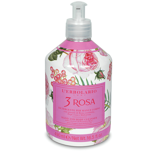L’Erbolario 3 Rosa καθαριστικό σώματος και χεριών- 490ml Γαλάκτωμα Σώματος Με Αρωματικές Νότες από: Εκατοντάφυλλα Τριαντάφυλλα, Άνθη Αλθαίας, Ροζ Πιπέρι