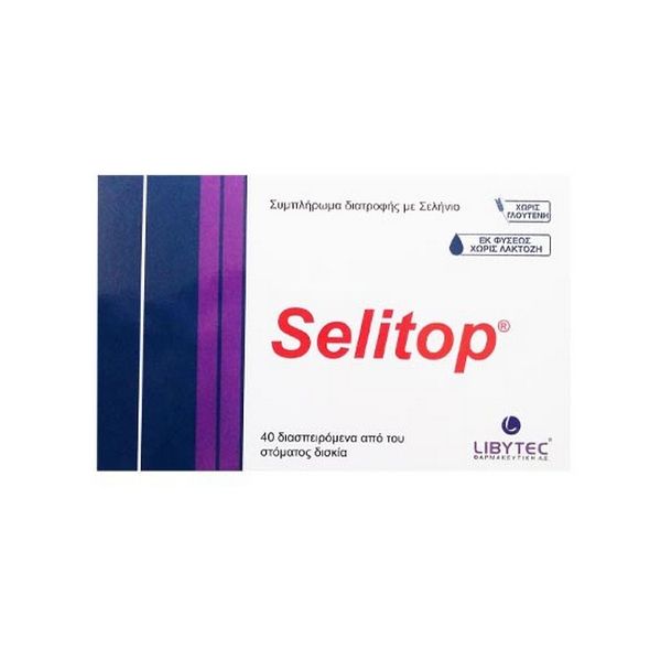 Το Selitop διασπειρόμενα από του στόματος δισκία είναι ένα συμπλήρωμα διατροφής οργανικού σεληνίου.