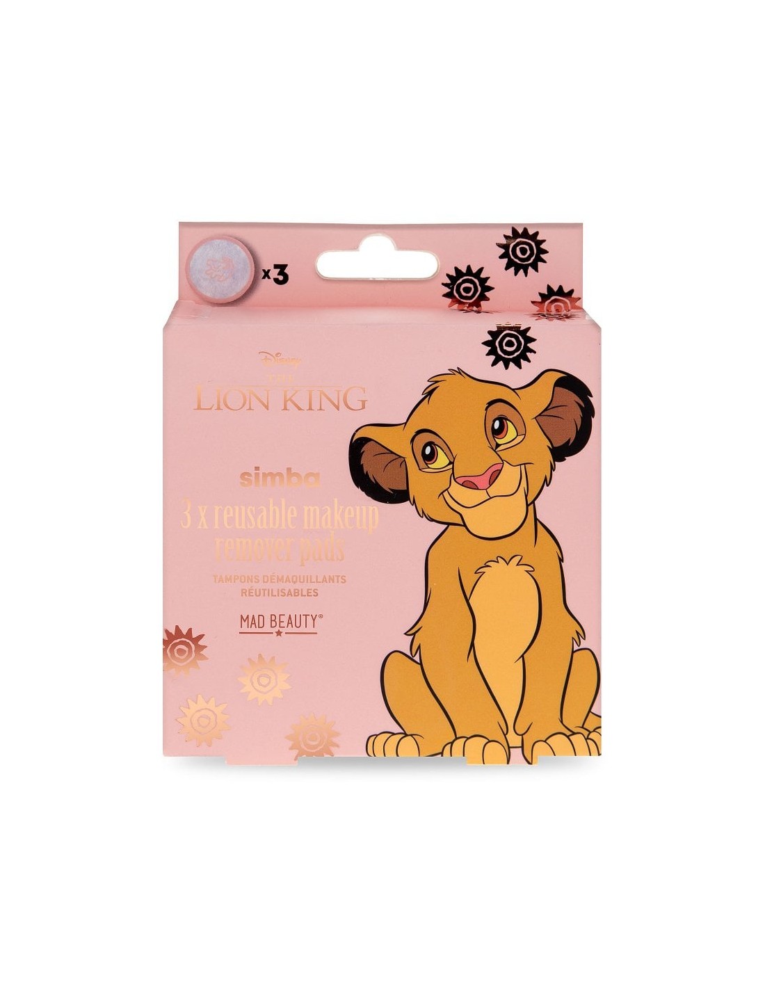 Φροντίστε το δέρμα σας αλλά και τον πλανήτη με αυτά τα εύχρηστα, επαναχρησιμοποιούμενα επιθέματα ντεμακιγιάζ εμπνευσμένα από την σειρά The Lion King της Disney. Κάθε εξαιρετικά μαλακό μαξιλαράκι διαθέτει ένα χαριτωμένο σχέδιο του Simba. Απλώς προσθέστε νερό ή το αγαπημένο σας διάλυμα καθαρισμού και σκουπίστε απαλά το πρόσωπο για να αφαιρέσετε το μακιγιάζ και τους ρύπους από το δέρμα σας. Πλένεται στο πλυντήριο στους 30 βαθμούς.