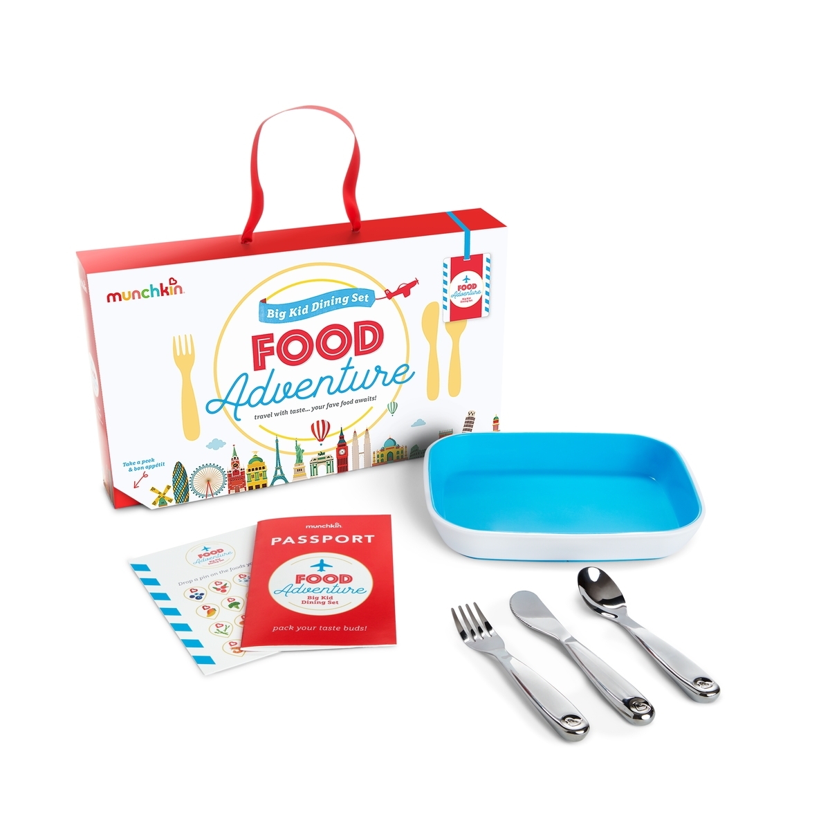 Ας ξεκινήσει το γευστικό παιχνίδι! Είτε το παιδί σας είναι εύκολο στο φαγητό είτε όχι, μπορεί να σας φαίνεται αδύνατον να το κάνετε να δοκιμάσει νέες γεύσεις. Το σετ φαγητού με θέμα τα ταξίδια Food Adventure Splash Big Kid Dining Set προσφέρει έναν διασκεδαστικό και δημιουργικό τρόπο να καταφέρετε τα μικρά σας να δοκιμάσουν νέα πράγματα — και να τοποθετήσετε νέες τροφές στο χάρτη (κυριολεκτικά).