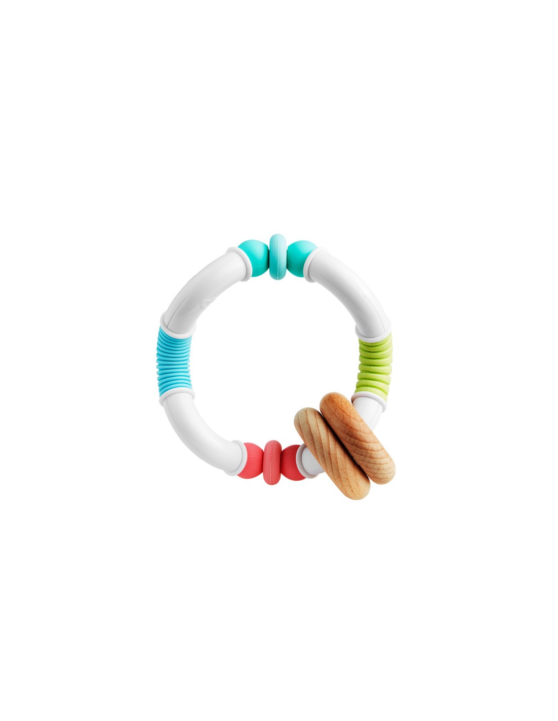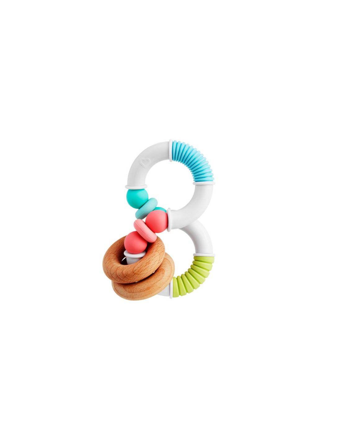 Κατασκευασμένο από 100% φυσικό ξύλο οξιάς και σιλικόνη κατάλληλη για τρόφιμα, αυτό το BPA free μασητικό διαθέτει πολλαπλές υφές, δακτυλίδια, εξογκώματα και ραβδώσεις για να ανακουφίσει τον πόνο και τη φαγούρα των ούλων.