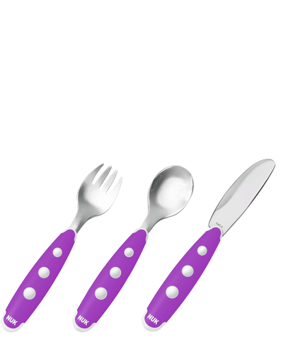 Όσο μεγαλώνει το παιδί σας, κάποια πράγματα παίρνουν σιγά σιγά τον δρόμο τους: π.χ. μπορεί πλέον να φάει με κουτάλι και πιρούνι. Έτσι, προσπαθεί να αντιγράψει όλο και περισσότερο τους μεγάλους, ακόμα και όταν κόβει κάτι. Το NUK Easy Learning Εκπαιδευτικό σετ κουτάλι-πιρούνι-μαχαίρι Maxi ενώνει μικρούς και μεγάλους: Το πιρούνι, το κουτάλι και το μαχαίρι είναι κατασκευασμένα από πραγματικό ανοξείδωτο ατσάλι. Το μικρό σχήμα είναι ειδικά σχεδιασμένο για το στόμα των παιδιών, διαθέτει στρογγυλεμένες άκρες και μύτες καθώς και εργονομικά σχεδιασμένες αντιολισθητικές λαβές, ενώ ανταποκρίνεται πλήρως στις παιδικές ανάγκες και ενδείκνυται για την πρώτη επαφή του παιδιού σας με το ανοξείδωτο σετ κουτάλι-πιρούνι-μαχαίρι. Το NUK Easy Learning Εκπαιδευτικό σετ κουτάλι-πιρούνι-μαχαίρι Maxi συνιστάται για παιδιά από 18 μηνών. Όλα τα προϊόντα της σειράς EasyLearning της NUK έχουν σχεδιαστεί έτσι ώστε να συμπληρώνουν το ένα το άλλο, καλύπτοντας όλα τα στάδια της ανάπτυξης του παιδιού σας.