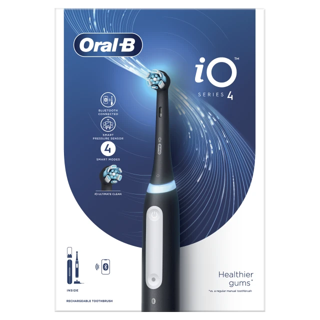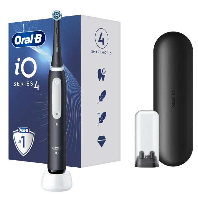 Η ηλεκτρική οδοντόβουρτσα Oral-B iO 4 διαθέτει την καλύτερη τεχνολογία της Oral-B, που συνδυάζει μια στρογγυλή κεφαλή εμπνευσμένη από οδοντιάτρους με ίνες μικροδονήσεων για αίσθηση επαγγελματικού καθαρισμού κάθε μέρα στο σπίτι.