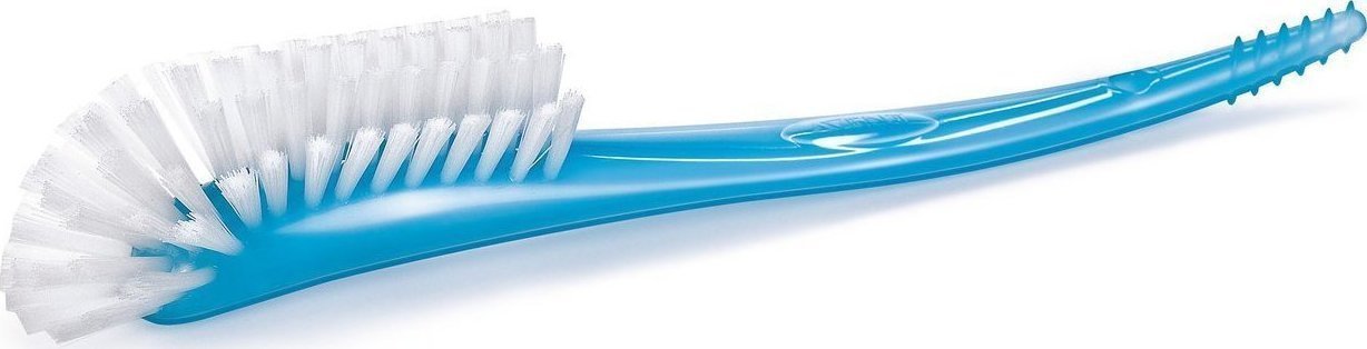 Βουρτσάκι με καμπυλοειδή κεφαλή: Βουρτσάκι με ειδική καμπυλοειδή κεφαλή και χυτή λαβή-άκρο που φθάνει στα άκρα κάθε τύπου μπιμπερό, θηλών και εξοπλισμού θηλασμού, για σχολαστικό καθαρισμό.