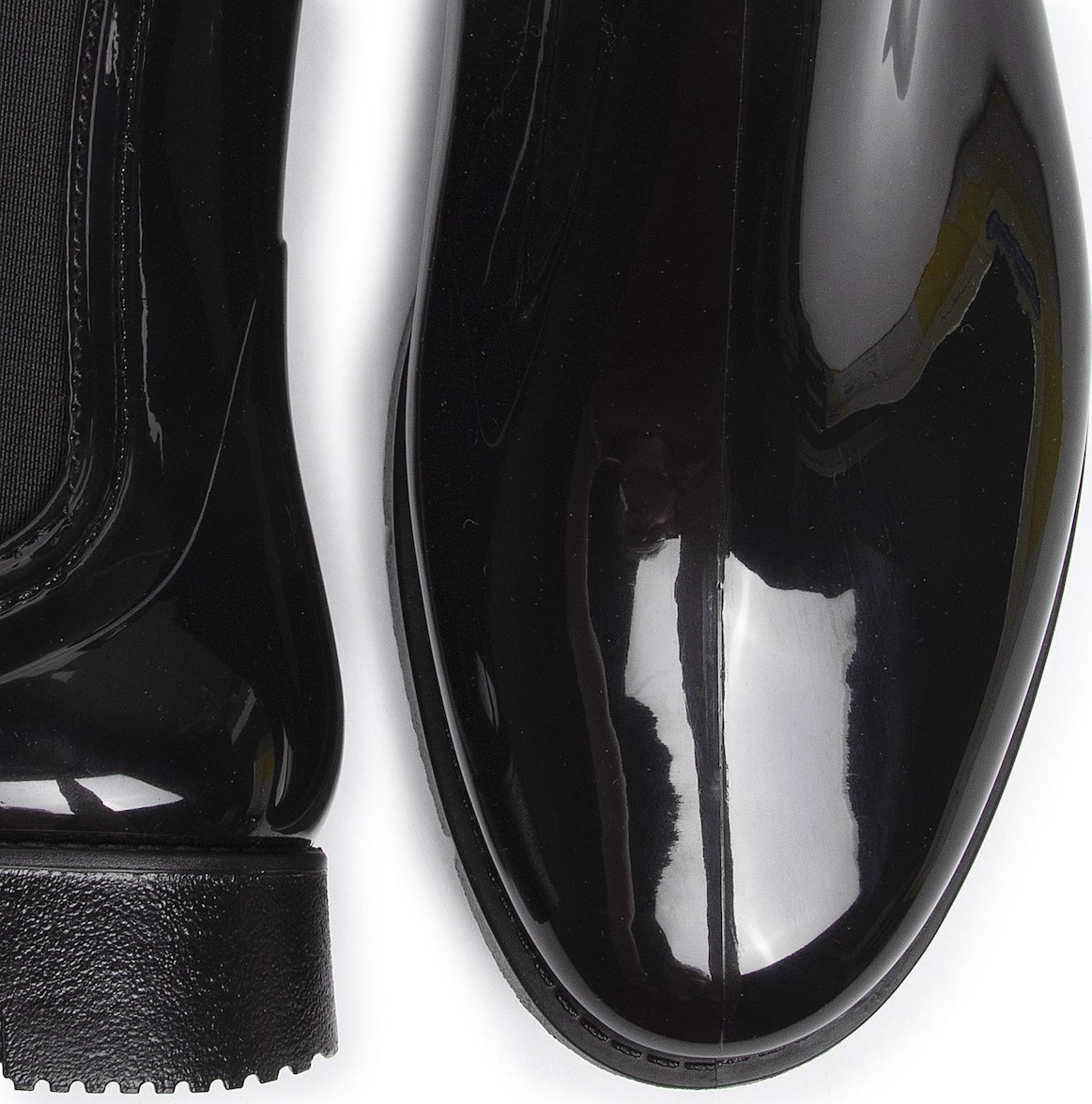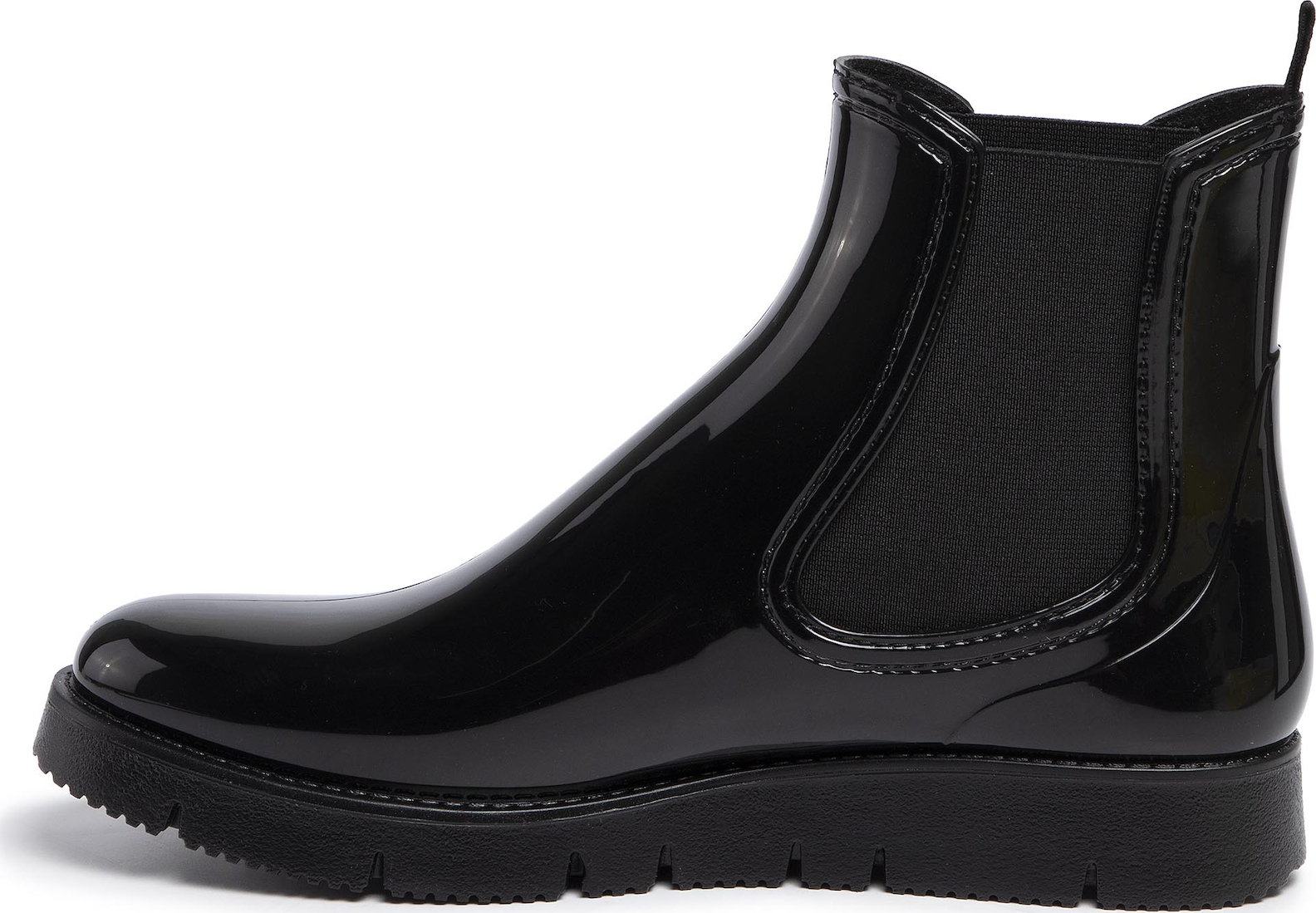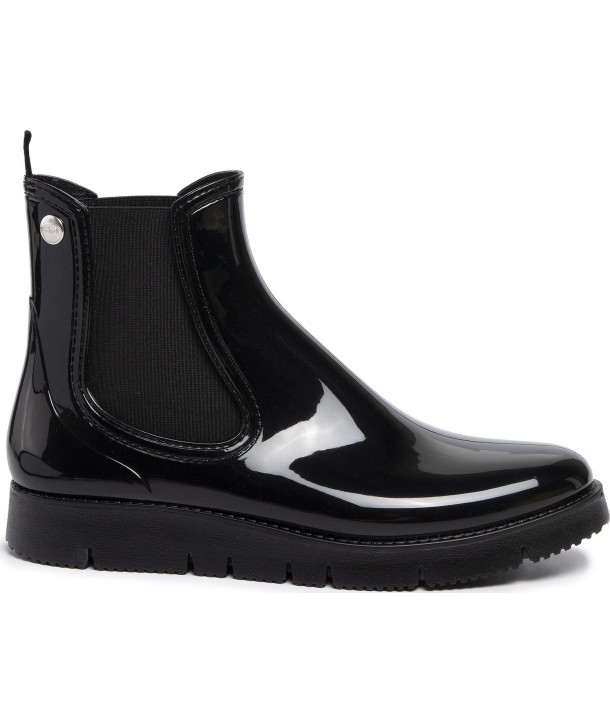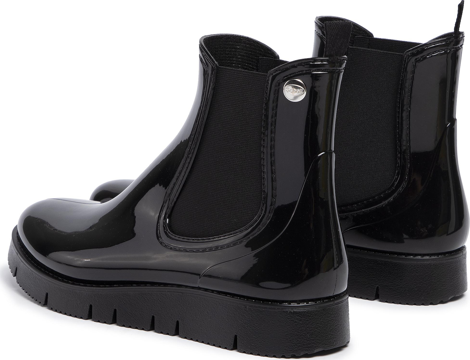 Scholl Eve ανατομικά μποτάκια-γαλότσες σε μαύρο χρώμα, κατασκευασμένα από PVC και ύφασμα.