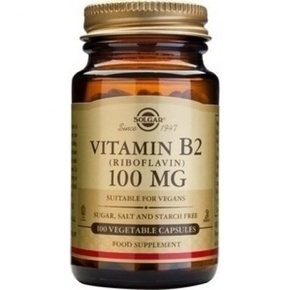 Το Vitamin B2 100 mg Vegetable Capsules από τη SOLGAR περιέχει Βιταμίνη B2, γνωστή και ως Ριβοφλαβίνη, μία από τις 8 Βιταμίνες Β.