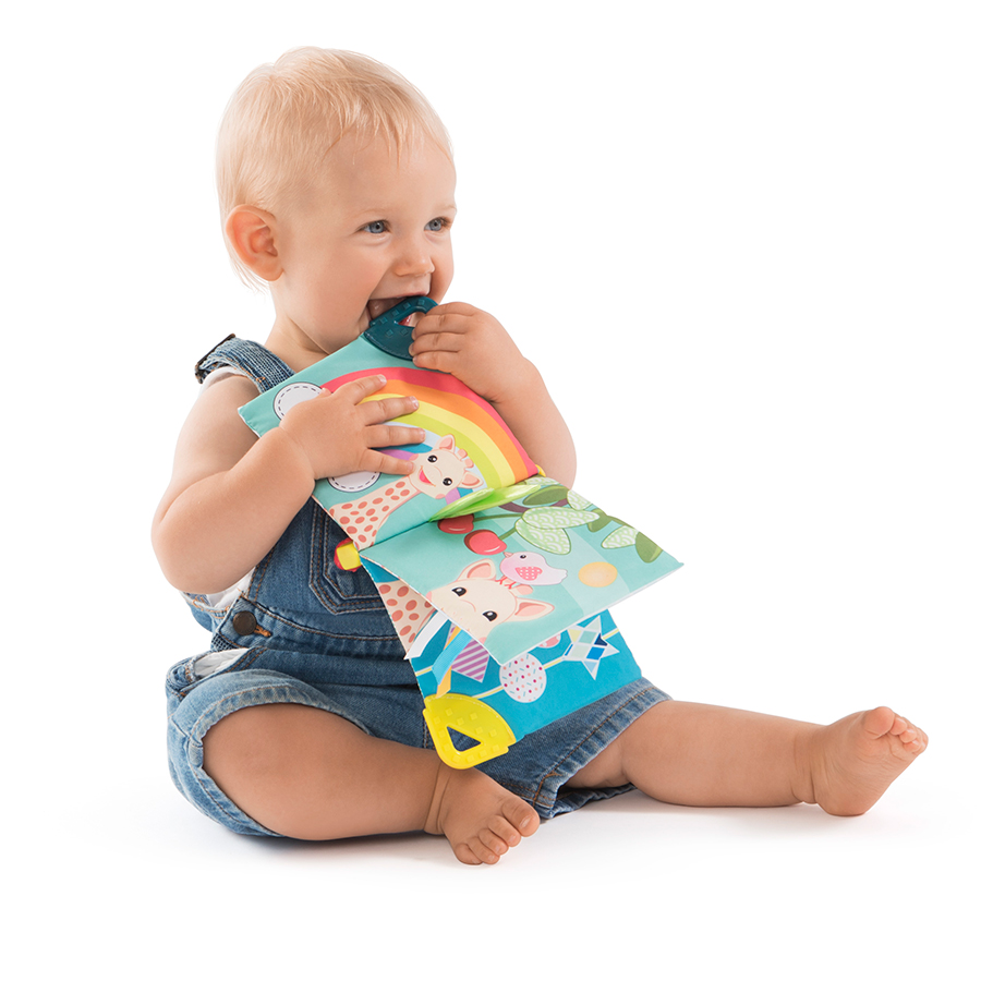 Το μωρό θα αναγνωρίσει την Σόφι καμηλοπάρδαλη και θα διασκεδάσει μετρώντας τα στοιχεία σε κάθε σελίδα “1 ουράνιο τόξο, 2 κεράσια, 3 συννεφάκια κλπ”