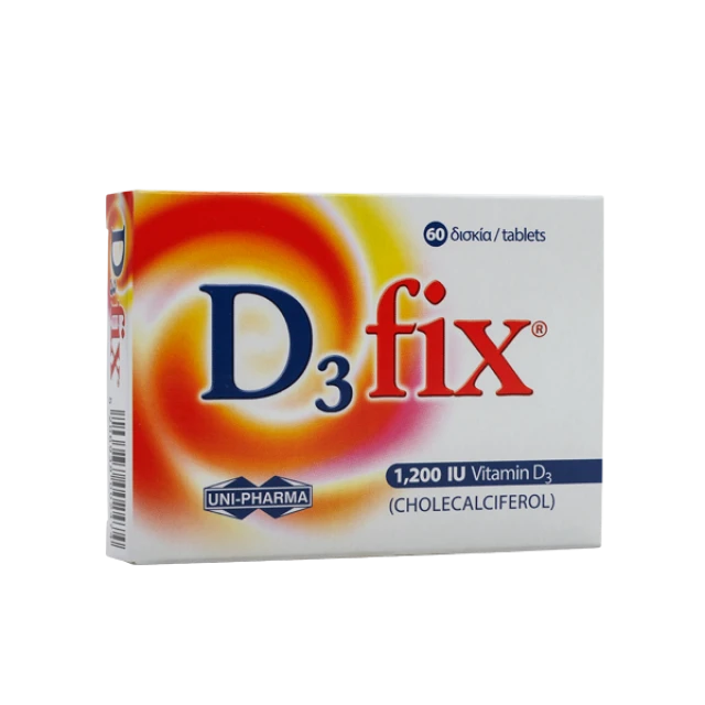 Uni-Pharma D3 Fix Βιταμίνη D3 για δυνάτά οστά και αρθρώσεις 1.200iu, 60 ταμπλέτες