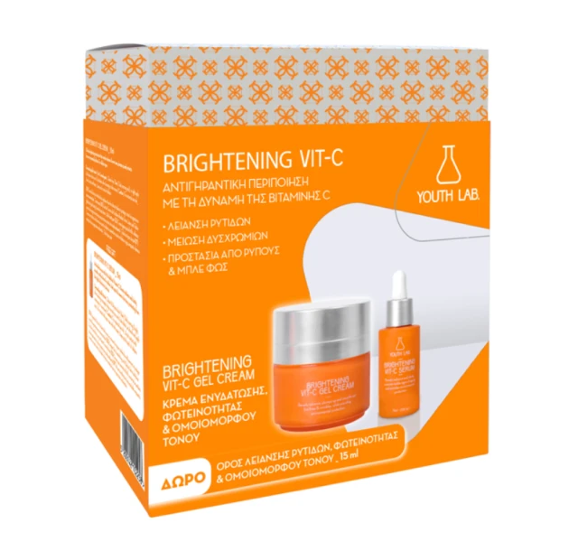 Youth Lab. Promo Brightening Vit-C Σετ Περιποίησης με Brightening Vit-C Κρέμα-Gel για Ενυδάτωση, Φωτεινότητα & Ομοιόμορφο Τόνο, 50ml & Δώρο Brightening Vit-C Ορός για Λείανση Ρυτίδων, Φωτεινότητα & Ομοιόμορφο Τόνο, 15ml, 1σετ